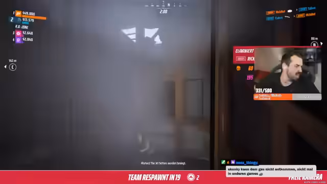 01:29:13Zu Beginn des Streams werden verschiedene Gameplay-Mechaniken in The Finals analysiert. Ein Zuschauer meldet ein Problem mit der Größe der L-Klasse im Spiel, was zu einer Diskussion über die visuelle Darstellung im Crouch-Modus führt. Der Streamer experimentiert mit Granaten und stellt fest, dass Splittergranaten nicht mehr so effektiv wirken wie zuvor und ihre Schadenswirkung als suboptimal beschrieben wird, besonders wenn Gegner in Räumen dicht beieinander stehen. Auch die Dynamik und Taktik der gegnerischen Teams wird angesprochen, wobei die fehlende Koordination der Blauen kritisiert wird.