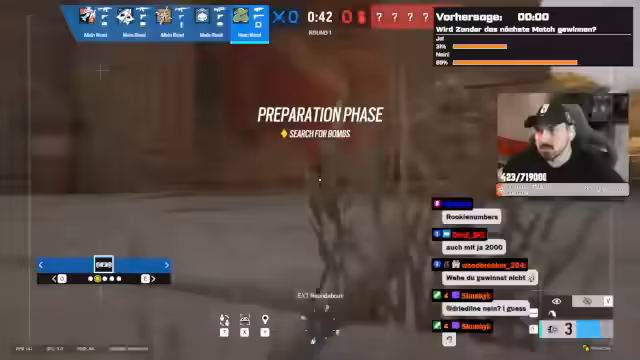 03:00:09Das Hauptaugenmerk liegt auf den aktuellen Matches von Rainbow Six Siege. Der Streamer kommuniziert intensiv mit seinem Team über In-Game Voice und führt taktische Calls. Er analysiert Spielzüge, reagiert auf das aggressive Gegenüber und versucht, Fehler zu vermeiden. Das Gespräch mit dem Zuschauer Woodbreaker deutet auf einen Hintergrund in der IT hin, während das Gameplay selbst von dynamischen Situationen, Siegen und Niederlagen geprägt ist.
