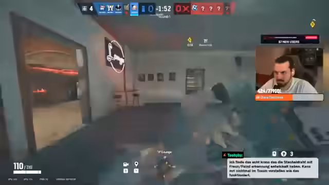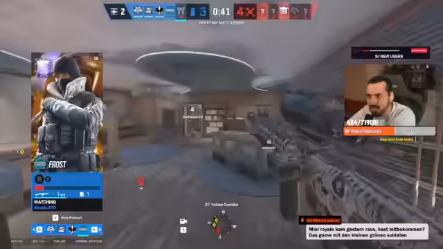 02:02:20Es wird die Durchführung einer Angriffsrunde in Rainbow Six Siege beschrieben, bei der der Fokus auf präziser Aufklärung und Koordination liegt. Trotz sorgfältiger Planung und dem Drohnen der Umgebung ("Ich hab alles gedroht") kommt es zu einem überraschenden Angriff der Caveira in den Toiletten, der das Team unvorbereitet trifft. Der Unmut über die mangelnde Unterstützung und die fehlende Reaktion der Teammitglieder wird deutlich ("Ich sag noch, ich brauch Support um und alle sind weg. Alle machen irgendwas anderes."). Es wird versucht, die Situation zu retten, indem ein Breach initiiert wird, aber die Zeit ist zu knapp, um den Side-Attack erfolgreich aufzubauen. Die Erkenntnis, dass jede Attack auf dieser Map verloren wurde, führt zu Frustration. Es wird analysiert, dass der frühe Tod durch die Caveira den Aufbau von Pressure verhindert hat. Die Strategie für die nächste Runde wird diskutiert, wobei der Fokus auf dem Zerstören von Bandits und dem Aufbau über Yellow Stairs und Bumper liegt. Es folgt eine kurze Unterbrechung, in der Star-Lord eingeladen wird und ein Discord-Update als nervig empfunden wird. Trotz eines "schönen Comebacks" wird bedauert, dass eine Attack hätte gewonnen werden müssen. Die Analyse zeigt, dass sich die Gegner immer gleich verhalten haben, was eine Anpassung der Strategie ermöglicht hätte. Der Fokus liegt nun auf der nächsten Runde, wobei die Bank als Defense Map betrachtet wird. Es folgt ein Aufruf zur Teilnahme an Predictions, um Punkte zu gewinnen.