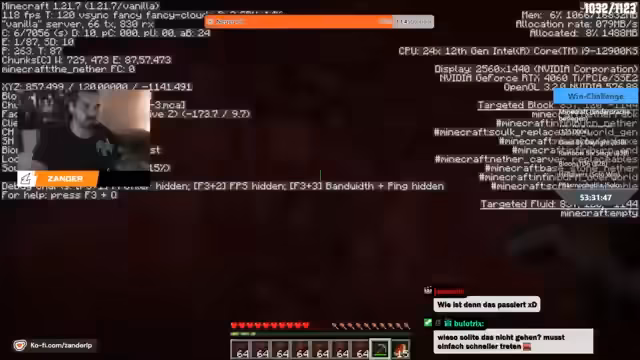00:56:41Der Stream konzentriert sich auf das Sammeln von Ressourcen für die OP-Verzauberungstisch-Strategie in Minecraft. Es wird intensiv nach Leder gesucht, um 15 Bücherregale zu craften. Parallel dazu beginnt die Erkundung von Höhlen zur Gewinnung von Kohle und Eisen. Der Streamer äußert Bedenken wegen der geringen Sicht im normalen Minecraft-Spiel und erwägt eine Gamma-Mod für zukünftige Challenges, um die Dunkelheit zu kompensieren. Die Entdeckung von laubfallenden Bäumen wird als Neuerung im Vanilla-Spiel erwähnt. Ziel ist es, schnell eine funktionierende Verzauberungstisch-Farm zu etablieren.