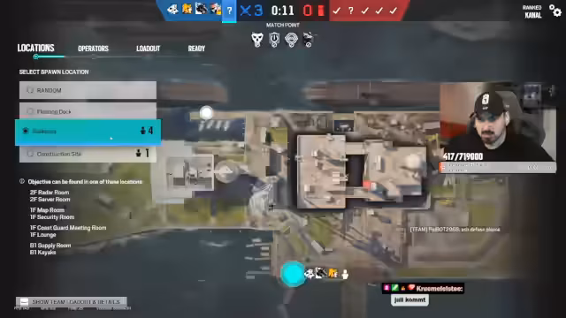 01:36:29Bei Rainbow Six Siege wird die Map Coast Guard gespielt. Es wird eine Side-Fake-Strategie mit dem Namen 'Coast Guard Meeting Room' geplant. Dabei laufen alle Spieler in die normale Topfloor-Side, um den Gegner in die Irre zu führen. Bei 1:30 oder 1 Minute sollen die Spieler dann wieder zurücklaufen, um eine Konfrontation zu vermeiden und dem Gegner eine Chance zu lassen. Das Ziel ist es, den Gegner zu verwirren und durch schnelle Bewegungen auf der Map einen Vorteil zu erzielen.