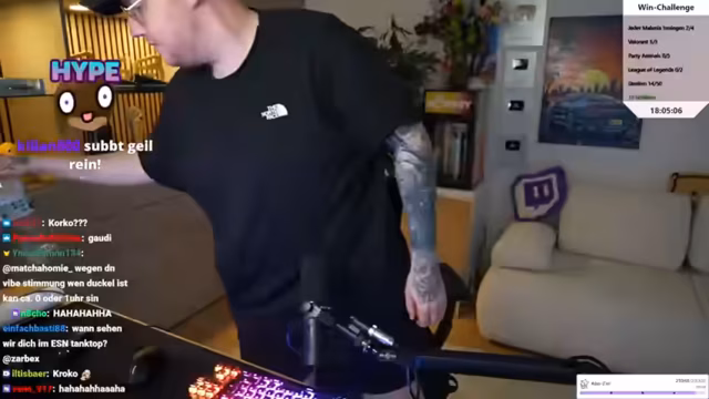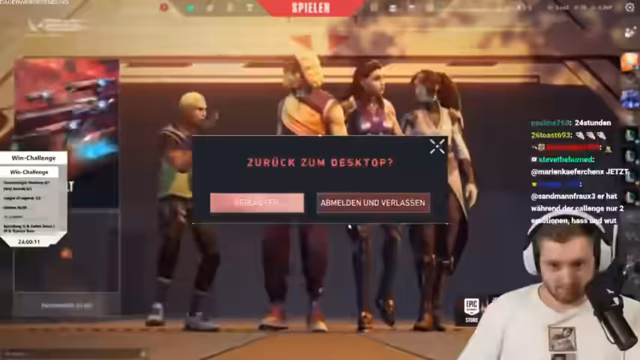 10:11:22Der Streamer erwähnt seine Partnerschaft mit Riot und seinen Account, der jedoch maximal nur 10 Spiele umfasst, hauptsächlich mit seinem Freund Willi. Er äußert Bedenken über die Leistung in Valorant und kritisiert die Entscheidung, viel Zeit in ein Spiel zu investieren, das nicht den gewünschten Erfolg bringt. Gleichzeitig diskutieren sie über weitere Spiele für die Challenge wie Chain Together und League of Legends.
