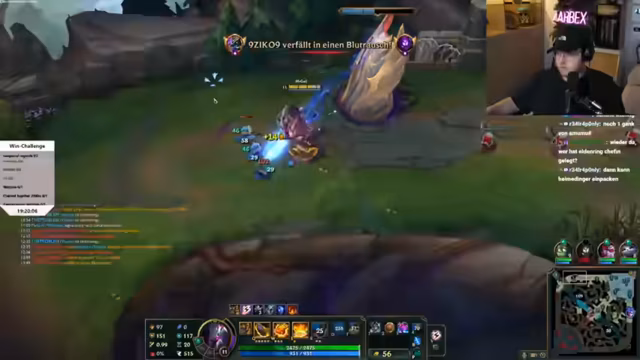 05:40:38Das Stream-Team befindet sich mitten in einem League of Legends-Spiel mit einem Geburtstags-Gameplay. Die Spieler diskutieren über unterschiedliche Spielstrategien, insbesondere im Top-Lane gegen einen Heimerdinger. Es gibt Diskussionen über Item-Builds, Lane-Management und das Schwierigkeiten gegen den Gegner-Nassus. Die Kommunikation zwischen den Spielern ist intensiv, mit Fehlern und frustrierten Reaktionen auf das Spielgeschehen.