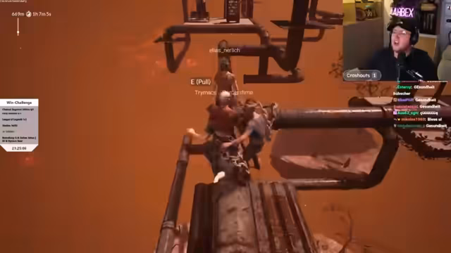 01:26:05Die Streamer diskutieren über Kooperationsprobleme innerhalb der Gruppe. Ein Streamer kritisiert einen anderen, der die Win-Challenge nicht versteht und zu viel Ragebait betreibt. Es wird versucht, eine Lösung zu finden, um die Zusammenarbeit zu verbessern und das Spiel zu meistern. Die Gruppe arbeitet an Strategien, um die Herausforderung zu überwinden.