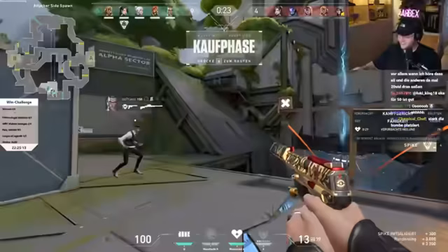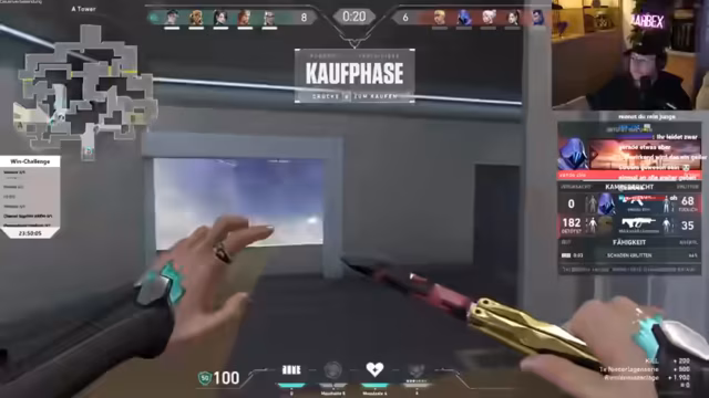 08:38:40Während der Valorant-Runde versuchen die Teilnehmer, taktische Manöver zu entwickeln, um die Gegner zu besiegen. Sie diskutieren über die Positionierung der Spieler und die Verwendung von speziellen Fähigkeiten wie Smokes. Es kommt zu kleineren Missverständnissen, jedoch gelingt es ihnen, mehrere Runden für sich zu entscheiden. Die Teilnehmer ermutigen sich gegenseitig und feiern kleine Erfolge während des Spiels.