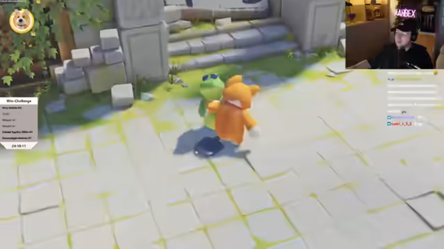 11:18:19Die Gruppe spielt Party Animals und versucht, verschiedene Runden zu gewinnen. Es kommt zu chaotischen Szenen, in denen die Spieler gegeneinander kämpfen und sich gegenseitig eliminieren. Besonders erwähnenswert ist der intensive Kampf um Siege, bei dem Strategien wie das Festhalten der Gegner und der Einsatz von Waffen wie Bomben und Armbrüsten eine wichtige Rolle spielen. Die Stimmung ist hoch, da das Spiel sowohl witzig als auch frustrierend sein kann.