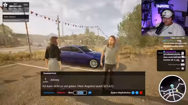 06:16:31Während des Streams standen Fahrzeugreparaturen und Verkäufe im Fokus. Es wurde ein Auto mit Loch im Auspuff, defektem Querlenker und Bremssproblemen instand gesetzt. Der Streamer erläuterte, dass man mit solchen Cargos einen Cash Grab machen kann, auch wenn es sich um Billigfahrzeuge handelt. Ziel ist es, die Fahrzeuge durch Reparaturen wie das Ersetzen von Bremsscheiben und Bremssätteln sowie durch Rostentfernung und eine thorough Reinigung aufzuwerten, um einen höheren Gewinn beim Verkauf zu erzielen.