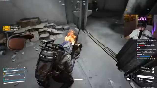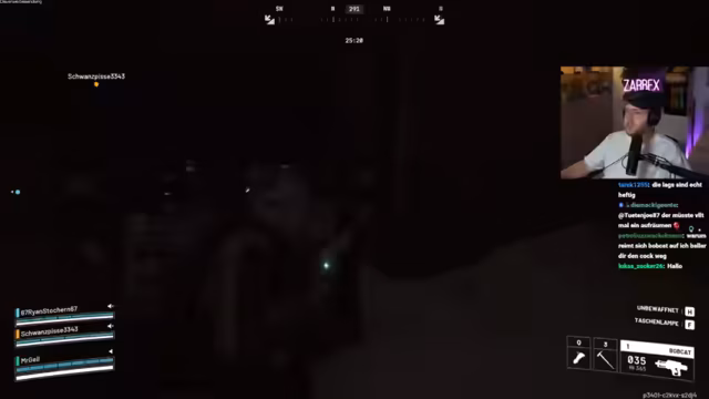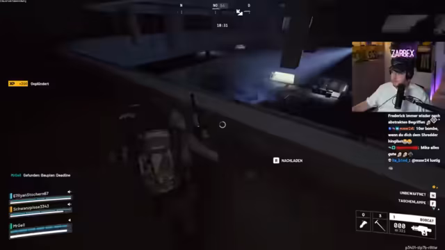 06:56:25Der Stream beginnt mit der Ankunft im Einsatzgebiet, wobei das Team strategisch vorgeht. Nachdem die feindlichen Peaches ausgemacht wurden, wird ein Angriff auf einen blauen Container gestartet. Es kommt zu heftigen Kämpfen, wobei ein Gegner erfolgreich eliminiert werden kann. Nach der erfolgreichen Attacke und dem anschließenden Plündern der Beute wird die sofortige Flucht angetreten, da ein weiterer Gegner, ein Shredder, auf das Team aufmerksam geworden ist und die Gegend nun unsicher ist.