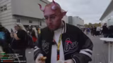 01:08:18Während des Streams trifft der Streamer auf zahlreiche Besucher in beeindruckenden Cosplays. Ein Highlight ist ein selbstgebautes Pyramid Head-Kostüm von Silent Hill. Es finden ausführliche Gespräche über die Liebe zu bestimmten Animes, die Herstellung von Cosplays und die Mühen, diese auf Messen zu tragen, statt. Das passionierte Handwerk der Fans wird gelobt.