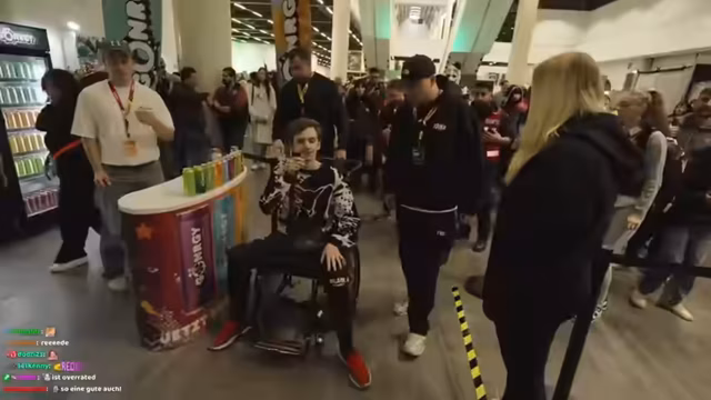 00:08:32Auf der Polaris-Messe angekommen, erkunden der Streamer und sein Team die Hallen. Er äußert seinen Hunger und erzählt Anekdoten von einem gemeinsamen Abend, der mit Steak und Alkohol endete. Er beschreibt die dünne Hotelwand und die unangenehmen Geräusche in der Nacht. Auf der Messe bestaunen sie die vielen handgefertigten Cosplay-Kostüme und ziehen Vergleiche zur Gamescom. Der Streamer zeigt sich beeindruckt vom Aufwand der Creator und erwähnt die vielen Furries vor Ort.