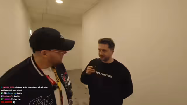 02:14:50Im Verlauf des Messebesuchs kommt es zu mehreren unvorhergesehenen Begegnungen, mit Personen wie Jen, die der Streamer zunächst nicht erkennt. Es werden Witze gemacht, etwa in Bezug auf eine limitierte Merch-Jacke, die plötzlich 350 Euro kosten solle. Währenddessen versucht der Streamer, all seine gekauften und erhaltenen Gegenstände unterzubringen, wobei sein Freund Gerrit Unterstützung benötigt. Ein absichtlich missverständlicher Witz über das Unterschreiben auf einer "Scheide" eines Schwertes sorgt für humoristische Verwirrung.
