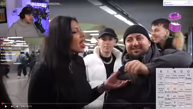 01:26:41Es wird zu einem neuen Abschnitt der Frankfurt-Tinder-Reihe übergegangen, die als 'Tinder-Hauptwache endet ganz asozial' betitelt wird, ein Format, das von Pumpin Monkey ins Leben gerufen wurde. Es wird ein Betrüger-Bingo ausgepackt, und es werden Kreuze gemacht, während neue Subs eintreffen. Es wird das Intro übersprungen, und es werden verschiedene Aktionen im Chat gefeiert. Es wird eine kleine Tinder-Session an der Hauptwache angekündigt, und es werden die Single-Ladies vorgestellt. Es wird über zu viel Make-up und Haram-Stufen diskutiert. Es werden die Single-Boys vorgestellt, und es wird über billige Hosen und Reaktionen auf die Videos gesprochen. Es wird eine Outfit-Analyse durchgeführt und festgestellt, dass das Format krank macht. Es wird über Brillen bei Frauen diskutiert und betont, dass es wichtig ist, gut sehen zu können.