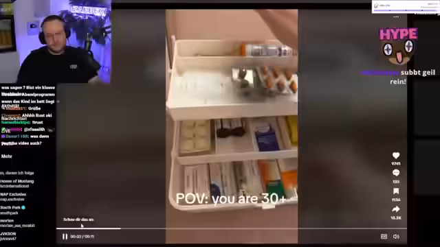 00:32:03Zarbex beendet die sentimentale Phase und kündigt an, mit den Reactions zu beginnen. Er hat ein paar interessante Videos herausgesucht, darunter die Supermarktdetektive, die Kokainflut im Hamburger Hafen und ein Simplicissimus-Video über Crystal Meth. Er fragt den Chat, ob sie das Simplicissimus-Video bereits gesehen haben. Anschließend geht es zu TikToks und später wird Subnautica gespielt. Er erzählt von seiner Vergangenheit, als er teilweise eine Woche am Stück wach war und wie er heute schon nach einer Nacht durchmachen erschöpft ist. Er erinnert sich daran, wie er sich selbstständig gemacht hat und oft zwei- bis dreimal pro Woche durchgemacht hat, was er heute nicht mehr könnte.