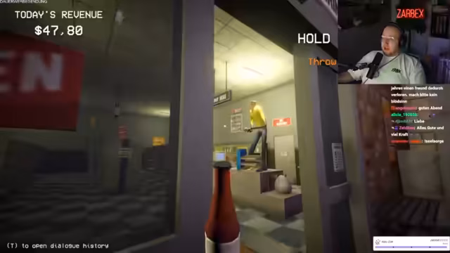 03:03:11Die Streamer beginnen ihre erste Schicht in der Horrortankstelle 'Shift at Midnight'. Sie sammeln Kleingeld ein und erledigen Aufgaben wie das Aufräumen von Zombie-Teilen, das Wischen von Blut und das Auffüllen von Regalen. Es kommt zu chaotischen Szenen, als sie sich gegenseitig mit dem Wischmopp attackieren und sich erschrecken. Sie lernen, dass sie Computer benutzen müssen, um Informationen über Kunden zu erhalten und Doppelgänger zu identifizieren. Ihr erster Kunde ist eine Dame, die sie versehentlich erschießen, was zu einer Diskussion über Professionalität und die finanzielle Insolvenz des Ladens führt. Der zweite Kunde entpuppt sich als Doppelgänger, da sie für ihren 30. Geburtstag einkauft, aber im Spieljahr 1993 bereits 74 Jahre alt ist. Sie wird erfolgreich eliminiert. Ein weiterer Kunde, dessen Wagen kaputt ist, wird als Monster identifiziert und getötet, wobei der Streamer selbst fast stirbt, weil seine Waffe blockiert ist. Sie überlegen, einen Panic Room zu bauen und Fallen aufzustellen, um sich vor den Monstern zu schützen.
