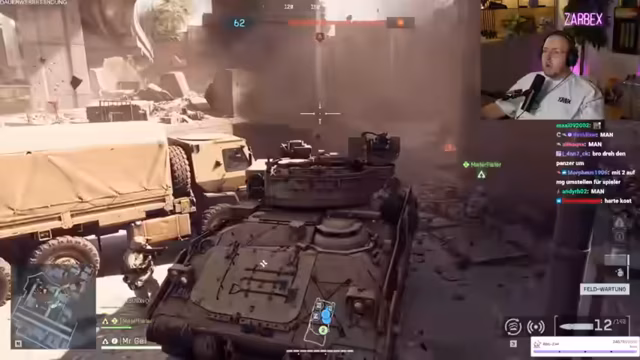 06:12:33Der Streamer und sein Squad legen großen Wert auf Teamplay in Battlefield, wobei die Kill-Death-Ratio (KD) weniger zählt als der Sieg. Sie konzentrieren sich darauf, gemeinsam Ziele zu erreichen, beispielsweise indem sie als Pioniere Panzer angreifen oder sich gegenseitig mit Raketenwerfern unterstützen, um Panzerduelle zu gewinnen. Es wird betont, dass es viele taktische Möglichkeiten im Spiel gibt, wie das Stehlen und Reparieren feindlicher Panzer. Der Streamer berichtet von seinen ersten Erfahrungen als Panzerfahrer, bei denen er sich auf das Schießen konzentrierte, während seine Teamkollegen reparierten, was zu einer hohen Anzahl von Kills führte und sich 'mächtig' anfühlte. Er erwähnt auch, dass er den kleinen Modus 'Best of Both Worlds' mag, besonders wenn man ein gutes Team hat, da dieser Modus mit nur zwölf Spielern klein und kompakt ist.