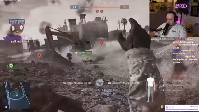 06:32:12Im Spielverlauf von Battlefield wird immer wieder Frustration über Spieler geäußert, die Glitches nutzen, um auf Dächer zu gelangen und von dort aus zu campen. Diese Taktik wird als 'nervig' und 'ekelhaft' beschrieben, da sie das Spiel unfair macht und den Spielfluss stört. Der Streamer und sein Team haben Schwierigkeiten, gegen diese 'Dachcamper' anzukommen, da sie von oben uneinnehmbare Positionen haben. Es wird die Hoffnung geäußert, dass EA diese Bugs patchen wird, da sie von Spielern ausgenutzt werden, die sonst 'keinen Blumentopf gewinnen' würden. Die Diskussion dreht sich auch darum, ob diese Glitches auf Konsolen genauso leicht auszunutzen sind wie auf dem PC. Trotz des Ärgernisses über diese unfairen Taktiken, versucht das Team, strategisch vorzugehen, indem sie beispielsweise Spawn-Beacons nutzen, um schnell wieder ins Geschehen einzugreifen.