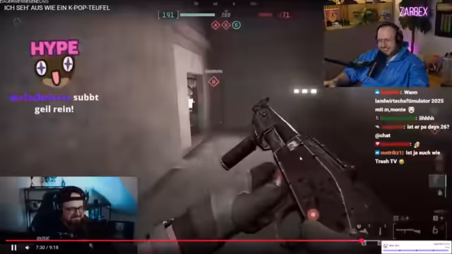 00:10:04Der Streamer begrüßt seine Zuschauer und berichtet, dass er innerhalb von drei Wochen zum zweiten Mal krank geworden ist, was er auf sein schwaches Immunsystem und den Kontakt mit vielen Menschen bei Events wie der Polaris und Podcast-Touren zurückführt. Er erwähnt, dass er trotz seiner Krankheit unbedingt an Knossy Big Brother teilnehmen wird, selbst wenn er Fieber hat. Er hat bereits viel unternommen, um sein Immunsystem zu stärken, darunter die Einnahme von Orthomol Immun, aber ohne Erfolg. Er kündigt an, dass er im Oktober und November, wie jedes Jahr, krank sein wird, aber diesmal nicht so schlimm wie beim ersten Mal. Er plant, sich mit Erkältungsmedikamenten und einem Erkältungsbad zu behelfen und erwähnt humorvoll, dass er sich auch die Eier rasieren wird. Er bedankt sich bei den Supportern und kündigt das heutige Programm an, das Reaktionen, ein Koop-Trash-Horror-Game mit Monte und Battlefield 6 mit Ello Tricks und Monster umfasst.