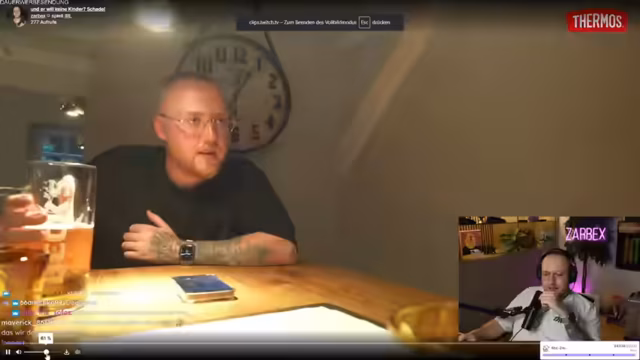 02:39:47Der Streamer und sein Freund üben sich in Zungenbrechern wie 'Brautkleid bleibt Blaukraut' und 'Fischers Fritz fischt frische Fische', was zu amüsanten Fehlversuchen führt. Er bittet darum, keine TikTok-Videos oder Clips von diesen Momenten zu erstellen, um Missverständnisse zu vermeiden, da er nur ein Bier getrunken habe. Anschließend reagiert er auf einen Clip, der 51.000 Aufrufe hat, sich aber nicht daran erinnern kann. Es folgt ein 'Cringe-Moment' von einem Live-Rosin-Dreh, der die chaotischen Zustände hinter den Kulissen des Fernsehens zeigt. Er kommentiert die unangenehme Stille in einem weiteren Clip und einen Jumpscare, den sie bereits gesehen hatten. Er bedankt sich bei einem Zuschauer namens Will für dessen Unterstützung und liebe Worte und bewertet einen Clip, in dem er selbst zu tief in eine Rollenspiel-Situation verwickelt war, mit drei Sternen. Ein weiterer Clip zeigt einen Stunt von Noreax, der mit fünf Sternen bewertet wird, und eine Pressekonferenz, die als verrückt beschrieben wird.