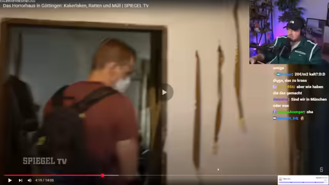 01:54:31Der Streamer reagiert auf ein Spiegel-TV-Video, das schockierende Wohnverhältnisse in einem Göttinger Wohnhaus zeigt. Er äußert sich entsetzt über den Müll, Unrat und Schäden im Gebäude und vergleicht die Zustände mit einem 'Fiebertraum' und einem 'Terrorcamp'. Besonders verstört ihn die Geschichte von Bewohnern, die Ratten mit Käse angeln. Er kritisiert die Zustände und fragt sich, wie es dazu kommen konnte, dass ein Parkhaus in einen solchen Zustand geraten ist. Der Streamer lobt die Bemühungen einer Anwohnerin, die versucht, die Zustände zu verbessern, rät ihr aber, loszulassen. Er äußert sich verwundert darüber, dass selbst die Polizei keine Auskunft über die Herkunft des Schrotts geben kann. Der Streamer betont, dass Armut keine Entschuldigung für mangelnde Sauberkeit ist und kritisiert die Verantwortlichen für die Zustände. Er spricht sich für eine Therapie für die Bewohner aus und kritisiert die Stadt für ihre Untätigkeit.