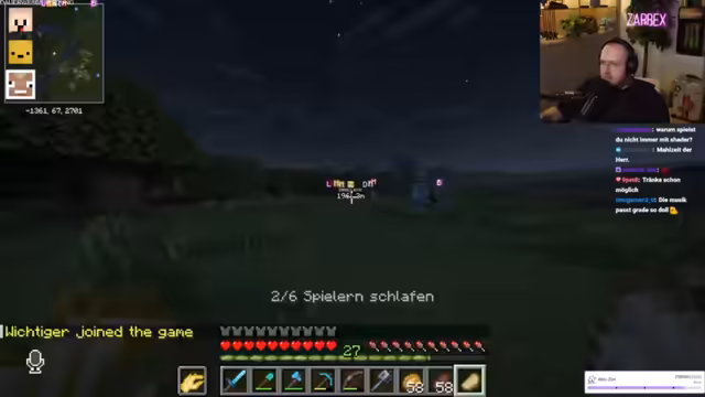 00:00:01Der Streamer erlebte einen unerwarteten Internetabsturz, der den Live-Stream abrupt beendete. Nach etwa 20 Minuten gelang es ihm, die Verbindung wiederherzustellen und den Stream fortzusetzen, was er als „Fiebertraum“ beschrieb. Er entschuldigte sich bei den Zuschauern für die Unterbrechung und bedankte sich für deren Geduld und Unterstützung. Während der Ausfallzeit versuchten Freunde wie Logo und Noisy, ihn in Minecraft zu unterstützen, um den Verlust seines Totems zu verhindern. Der Streamer betonte, wie wichtig es ihm war, die geplanten zwölf Stunden Sendezeit zu erfüllen und nicht vorzeitig offline gehen zu müssen, da der Stream bis dahin sehr erfolgreich lief. Er scherzte über die Situation und verglich das abrupte Ende mit einem unbefriedigenden Erlebnis, bevor er sich wieder voll auf das Minecraft-Spiel konzentrierte.