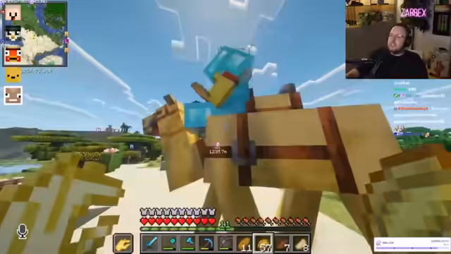 00:57:13Der Streamer und andere Teilnehmer tauschen sich über humorvolle Namen für ihre Minecraft-Gegenstände aus. Es werden Vorschläge wie 'Doppeldildo' für ein Schwert und 'Schweinefleischklopper' oder 'Arschfister' für einen Hammer gemacht. Die Unterhaltung ist von einem lockeren und scherzhaften Ton geprägt, wobei auch über die Namensgebung von Kamelen und deren Verhalten im Spiel diskutiert wird. Es wird erwähnt, dass Kamele angeleint werden müssen, um sie an der Basis zu halten. Die Spieler planen, einem Kamel den Namen 'Schradin' zu geben, was zu weiteren humorvollen Kommentaren führt. Die Atmosphäre bleibt entspannt und von gegenseitigem Spott geprägt, während sie sich auf bevorstehende Aufgaben vorbereiten.