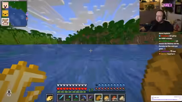 01:00:28Die Spieler besprechen Strategien zum Farmen von Tridents, die nur von 'Drowned' (ertrunkenen Zombies) gedroppt werden. Es wird erklärt, dass Drowned jederzeit gefarmt werden können, solange man sich im richtigen Fluss befindet. Ein Tipp ist, Drowned nicht sofort zu töten, sondern sie zu 'aggroen' und mit der Faust zu schlagen, um die Chance auf das Spawnen weiterer Drowned zu erhöhen. Die Gruppe plant, sich auf die Suche nach Tridents zu begeben, bevor sie ihre Ausrüstung verzaubern. Es wird auch über die Funktionsweise eines 'Mace-Hits' gesprochen, bei dem der Fallschaden in Angriffsschaden umgewandelt wird. Die Spieler bereiten sich auf die Jagd vor, indem sie Boote und Namensschilder für ihre Tiere organisieren.
