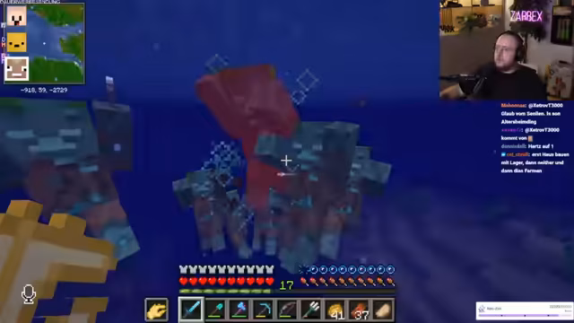 01:33:52Die Spieler setzen ihre Suche nach Tridents fort, was sich als äußerst schwierig und zeitaufwendig erweist. Sie versuchen, Drowned zu finden, die Tridents droppen, und experimentieren mit verschiedenen Strategien, um die Spawn-Rate zu erhöhen. Die Frustration über das langsame Farming und das Fehlen von Tridents wird deutlich. Währenddessen interagiert der Streamer intensiv mit der Community und bedankt sich für zahlreiche Sub-Gifts. Es wird eine 'Kammer der Ehrungen' für Sub-Gifter angekündigt, und die Community wird aufgefordert, sich aktiv am Chat zu beteiligen. Trotz der Schwierigkeiten beim Farming bleibt die Stimmung humorvoll und engagiert, mit vielen persönlichen Anekdoten und Witzen, die die Bindung zur Community stärken.