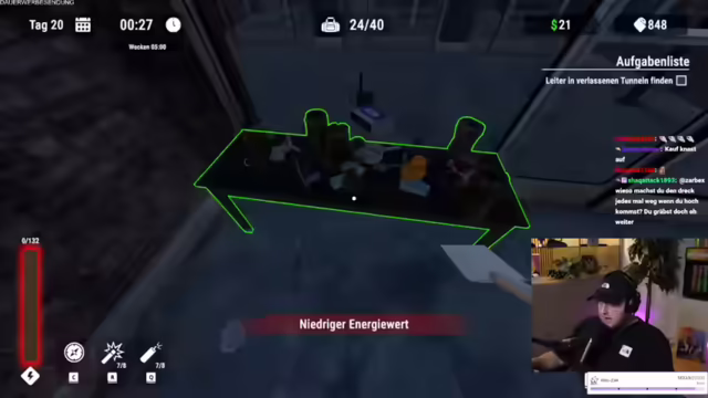 05:14:10Der Streamer plant, die Items zu verkaufen, um Geld zu bekommen. Er glaubt, den Ausgang gefunden zu haben und will das Spiel konzentriert durchspielen. Schradin ruft an, wird aber ignoriert. Es wird erwähnt, dass der Streamer für den Mallorca IRL-Stream fest eingeplant ist, aber er lieber mit seiner Freundin in ein All-Inclusive-Hotel fliegen würde. Frank Rosin schaut im Chat vorbei und wird gegrüßt. Der Streamer kann sich die Schaufel noch nicht leisten, weil der Händler so knauserig ist. Er nimmt alle Items mit, obwohl er sie eigentlich nicht mehr braucht. Er glaubt, den richtigen Weg gefunden zu haben und will den Tunnel ausgraben. Er wurde bereits mehrmals hochgenommen, einmal mit Absicht, einmal aus Versehen und einmal durch einen Bug. Er will die Zelle noch mit ein paar Top-Pflanzen ausstatten, damit der Wärter länger braucht zum Wiederkommen. Der Streamer wird fast erwischt, weil er die Schaufel nicht ablegen konnte. Er bekommt Gänsehaut und Schweißausbrüche. Er braucht kein Mittag und geht graben. Er ist zu gierig und bugt wegen den ganzen Items. Er spielt das Spiel bis zum Durchspielen. Er will die Leuchtpistole verkaufen. Er hat das Quest-Item gefunden. Der Streamer fragt den Chat, ob er es heute schafft auszubrechen. Er muss hochgraben. Er will nicht nochmal alles ausbuddeln. Er braucht das Geld für ein paar Toppflanzen. Hier müsste der Ausgang sein. Er nimmt alles mit. Er spielt seit zwölf Stunden dieses Spiel und vergisst jedes Mal wieder sein Inventar auszulernen. Der Händler gibt ihm immer weniger Geld für seine Items. Er will sein gratis Klopapier abholen. Der Wärter hat nicht mal den Countdown angezeigt. Der Streamer wäre fast gefickt gewesen. Er will noch ein paar mehr Dollar haben. Er ist ein Baller in dem Game. Er muss noch ein paar Leuchtstäbe klauen. Er will sich den Weg markieren, sonst findet er niemals wieder zurück. Die Gänge sind richtig verwinkelt. Er hat eine schrecklich schlechte Orientierung. Er will nur ein bisschen Kohle machen. Er küsst die Eier der Sub-Chatter. Er nimmt Müsli mit.