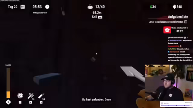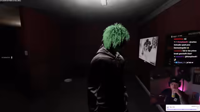 04:46:17Der Stream wechselt zu mehreren Themen und Interaktionen. Ein "Joker" aus dem Chat für ein Spiel wird aktiviert. Es geht um die Beschäftigung mit Marc Gebauer und seinen Uhren, als auch um geplante Kooperationen mit Schradin und Monte. Schließlich startet das finale Finale des Prison Break Simulators. Nach einem früheren Bug, der den Ausbruch verhindert hat, ist das Ziel nun, mit einer aufgerüsteten Schaufel und strategischem Graben endlich aus dem Hochsicherheitstrakt auszubrechen.