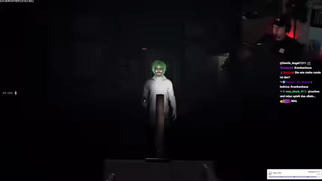 06:32:19Während des Streams wird eine Geisterjagd mit Schradin gespielt, wobei Schwierigkeiten auftreten und das Team mehrfach scheitert. Es wird überlegt, ob das Krankenhaus eine einfachere Map wäre, um den Geist besser auszuspielen, aber Bedenken hinsichtlich Schradins Fähigkeiten werden geäußert. Es wird ein Zuschauer erwähnt, der im Chat ist und dessen Frau gelobt wird. Der Streamer plant, Marc Eggers privat zu besuchen, lehnt aber einen Besuch auf dem Ballermann ab, da er keine Lust auf betrunkene Deutsche hat. Es wird überlegt, eine Nebelmaschine für zukünftige Streams zu kaufen, aber aufgrund möglicher Probleme mit Feuermeldern verworfen.