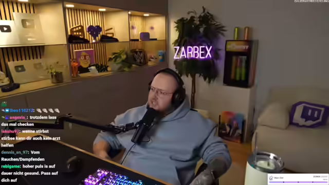 Zarbex spricht über Erfahrungen mit Horror-Spielen, die Schwierigkeiten des Datings, Sorgen um KI-Missbrauch und persönliche Ekel-Erlebnisse. Es werden Reaction-Formate wie Berlin Tinder und Speedcops gezeigt, gefolgt von einem Spieleabend mit Papaplatte. Diskussionen umfassen auch psychische Gesundheit, Polizeiarbeit und kuriose Alltagsbeobachtungen.