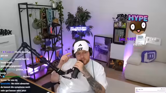 00:07:10Der Stream beginnt nach anfänglichen technischen Verzögerungen. Der Streamer präsentiert sein neues, ungewohnt weißes Merchandise, das kürzlich erschienen ist, und zeigt dabei auch eine weiße Kappe. Zudem erwähnt er anstehende Verbesserungen im neuen Streaming-Room, wie die Installation von Akustikpaneelen und einem Schrank, um die Arbeitsbedingungen zu optimieren.
