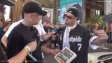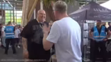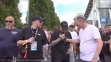 01:04:43Der Stream beginnt mit einer lockeren Begrüßung des Chats, wobei beleidigende Kommentare mit 50 Subs bestraft werden. Die Streamer geben einen Einblick in ihren bisherigen Ablauf: Sie sind seit Donnerstag vor Ort, haben am Freitag mit Promo-Aktionen für Aufmerksamkeit gesorgt und am Samstag ein dreistündiges Meet & Greet durchgeführt. Sie beschreiben den Andrang am Sonntag als Tsunami aus Menschen und zeigen große Vorfreude auf die anstehenden Aktivitäten wie Panzerfahren, Driften und das Drag Race. Besonders das Panzerfahren, das erstmals für einen der Streamer ist, wird als persönliches Highlight erwähnt.
