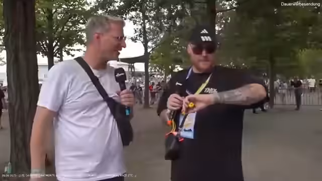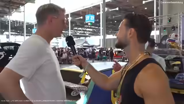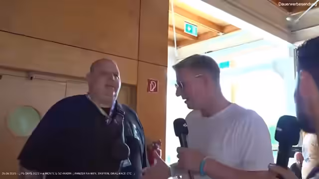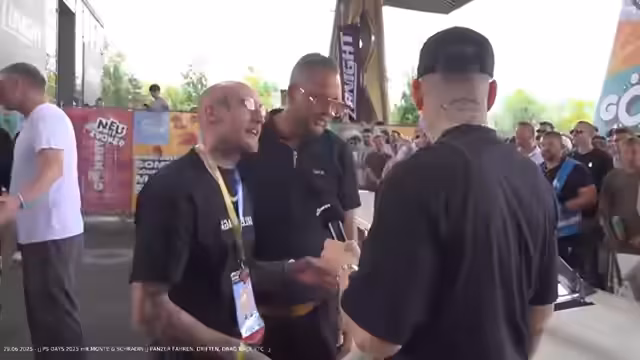 00:48:54Ein zentraler Moment ist die Ankunft des Streamers Marcel, der als „Papst von Twitch“ und Macher der PS Days bezeichnet wird. Er landet im Helikopter und wird von Monte und Schradin sowie dem Publikum euphorisch empfangen. Die Moderatoren führen ein kurzes Interview mit ihm, bei dem er seine Vorfreude auf den Tag zum Ausdruck bringt und eine besondere Warnung für die späteren Fahrten in leistungsstarken Autos gibt. Er verspricht ein unvergessliches Erlebnis, das so intensiv sei, dass man zweimal vor dem Stream gegangen sei.