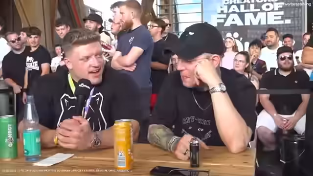 02:08:18Die Stimmung verspricht sich in eine humorvolle und eher befreundete Konfrontation zwischen den Streamern. Es gibt gegenseitige Provokationen und eine übertriebene Ansage für ein imaginäres Promi-Boxen, wobei der deutliche Größenunterschied thematisiert wird. Die Situation wird als reine Entertainment-Nummer abgetan, und die beiden beschäftigen sich anschließend mit dem Schreiben von fiktiven Disstracks. Die Dynamik bleibt freundschaftlich, mit spielerischen Drohungen und dem Hinweis, dass der Stream im Kern Spaß machen soll.