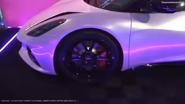 08:13:11Der Stream beginnt mit einer Diskussion über die Leistungsfähigkeit von 400 PS im Vergleich zu Lamborghini. Die Träume der Streamer reichen von einem LaFerrari bis hin zu einem humorvollen Plan, einen rollatorähnlichen Bühnenwagen mit Flammenlackierung als künstlerisches Statement auszustellen. Anschließend wird ein hellblaues Fahrzeug mit Perlmutt-Lackierung vorgestellt, das im Sonnenlicht lila schimmert und als besonders sexy beschrieben wird.