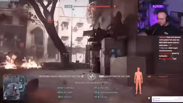 03:04:38Der Streamer erlebt intensive Kämpfe in Battlefield 6, wobei er sich auf den Kontrollpunkt B konzentriert. Er kommuniziert aktiv mit seinem Mitspieler Reapers und fordert Waffenmunition. Er kritisiert taktische Fehler, wie das Platzieren von Campingwänden, und beschreibt chaotische Szenarien, in denen er schnell eliminiert wird. Dabei ist er bemüht, die Rundenanalyse aufzugreifen und sein Verhalten zu rechtfertigen, indem er betont, dass er wiederbelebt wird, um weiterzukämpfen.