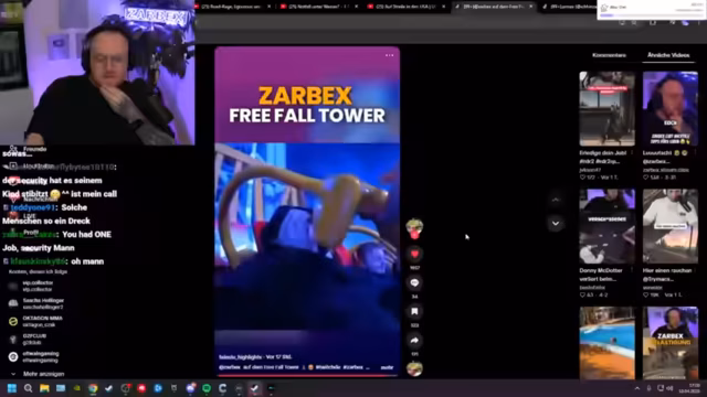 00:42:28Der Streamer spricht über seine Ängste während der Fahrt im Freefall Tower und die Frage, wie man im Falle eines Stromausfalls gerettet werden könnte. Er erwähnt einen Tweet, den er über Montes PC-Probleme während eines Streams abgesetzt hat. Er beendet die Dom-Erzählung und kündigt an, zu Reaktionen überzugehen. Er erwähnt, dass er sich immer Zeit für Fotos mit Zuschauern nimmt, aber dies in bestimmten Situationen, wie z.B. auf dem Hamburger Dom mit einer großen Menschenmenge, nicht möglich ist. Er äußert seinen Ärger darüber, dass ein Kind einem Security ein für seine Freundin Julia gewonnenes Plüschtier gestohlen hat. Abschließend erwähnt er ein TikTok-Video, in dem jemand in seinem Auto grillt und dabei einen Brand verursacht.