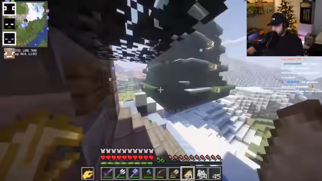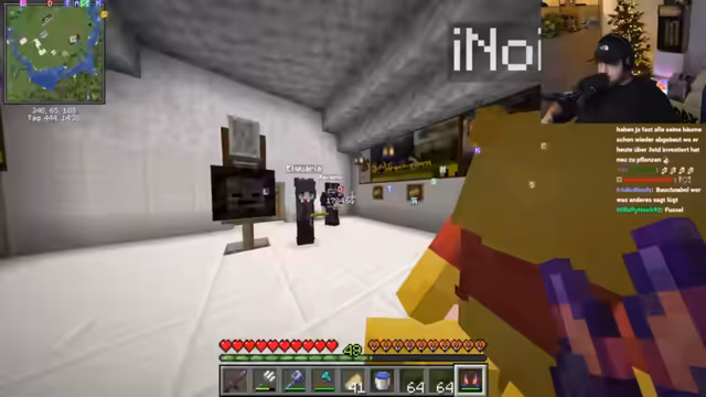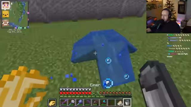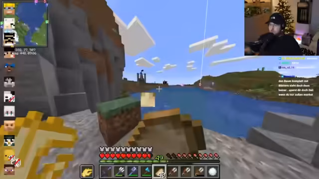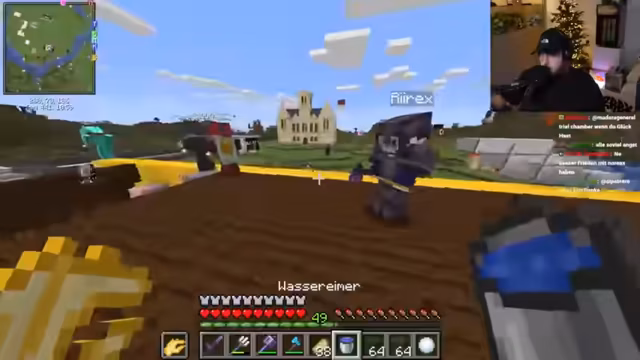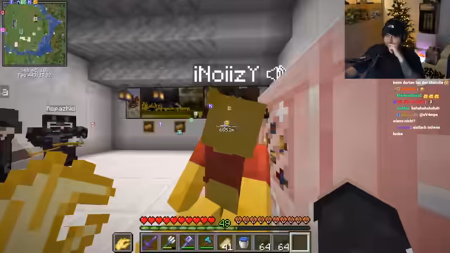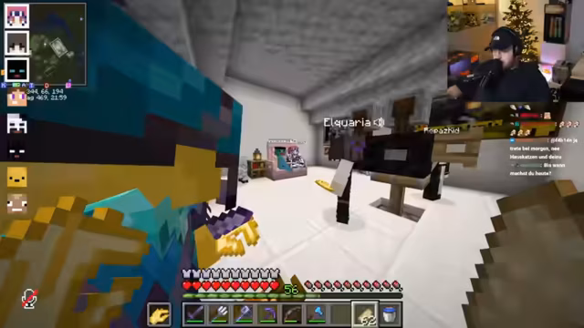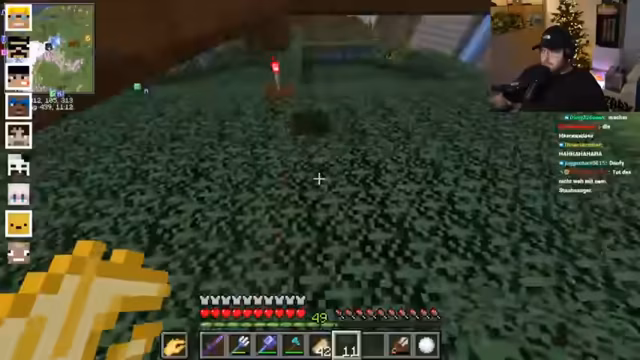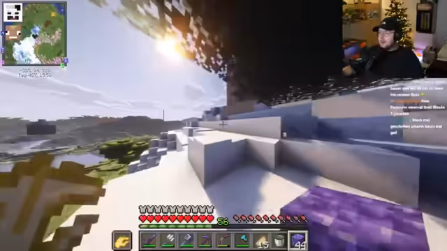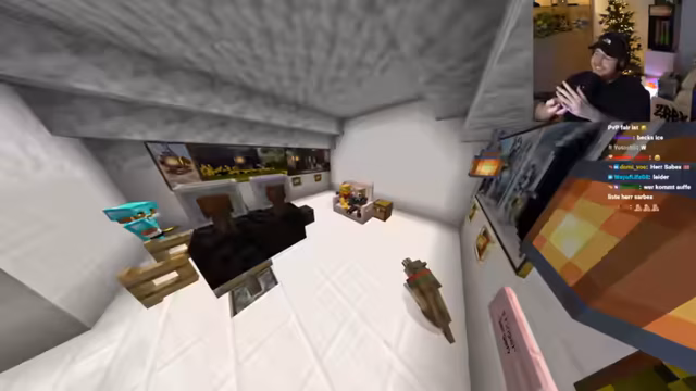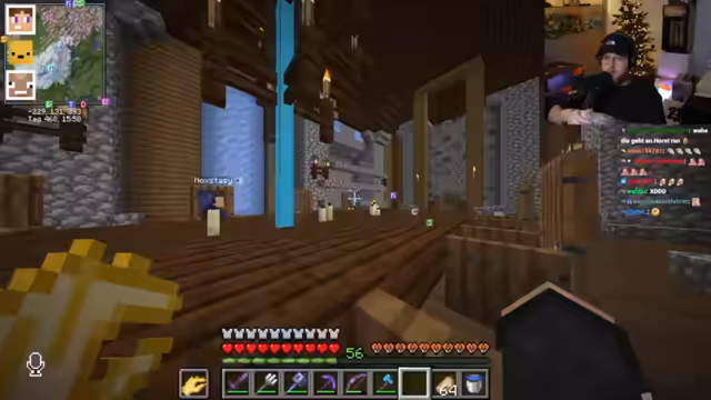 01:06:33Beim Einloggen in Minecraft wird der Streamer von anderen Spielern gefickt – Schradin versucht erfolglos, unter dem Weihnachtsbaum zu sprengen. Mert wird gemobbt, obwohl er der friedlichste Spieler ist. Hauptziel heute: Weihnachtsbaum fertig bauen und Tom sowie Danny schmücken. Ryrex tritt auf und präsentiert Ideen für einen Bergbau mit Wither-Köpfen.