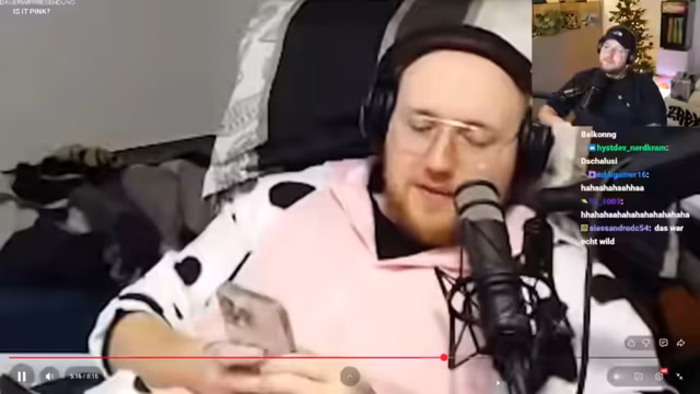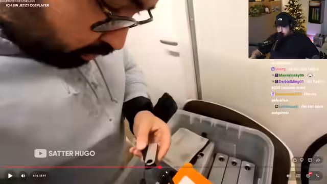 00:50:20Ein Clip zeigt Zarbex im Tittenkleid, wo ein Kleidungsstück verrutscht – er flüchtet überfordert aufs Klo und verliert dort seinen Ring. Es folgen Diskussionen über Stream-Awards: Kipst wird als 'geisteskrank' bezeichnet, und Zarbex plant, Awards künftig per Post zu schicken, um Zeit zu sparen. Abschließend thematisiert er seine Tattoo-Kruste: Er darf sie nicht aufkratzen, obwohl es juckt, und beschreibt die unschönen Folgen für sein Erscheinungsbild.