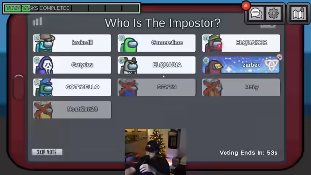 06:35:30Während des Spiels erklärt Zarbex seine Positionen: Er ist als Scientist in der Cafeteria und sieht Kroko tot auf der rechten Seite. Er verdächtigt G-Time, da dieser zuletzt in der Nähe von Weapons gesehen wurde. Durch ADHS-bedingte Konzentrationsschwierigkeiten kann er sich nicht an alle Bewegungen erinnern. Als die Lichter ausgehen, bemerkt er Aquaria in Storage und Eldos, der von O2 kommt. Nach einer Diskussion votet das Team gegen Aquaria, was sich als Fehlentscheidung erweist. Zarbex bereut, nicht früher auf Micky aufmerksam gemacht zu haben, der als einziger nicht im Stack war.