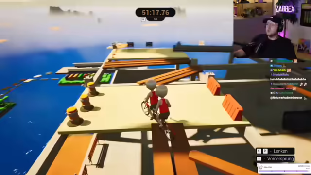 06:23:20Es wird über die Schwierigkeit eines Spiellevels diskutiert, wobei die unberechenbaren Räder und das Timing für Frustration sorgen. Vergleiche mit anderen Sendungen wie Joko vs. Klaas werden angestellt, wobei betont wird, dass Kenny vs. Benny aus den frühen 2000ern eine andere Liga sei. Trotzdem werden auch die 'Nicht-Lachen'-Folgen von Joko vs. Klaas als unterhaltsam empfunden. Es folgen weitere Versuche, den aktuellen Spielabschnitt zu meistern, wobei verschiedene Strategien ausprobiert werden, darunter mehr Anlauf nehmen und das Timing anpassen. Die Schwierigkeit des Levels führt zu wiederholter Frustration und dem Gefühl, zu dumm für diese Aufgabe zu sein. Trotzdem wird nicht aufgegeben und weiter nach einer Lösung gesucht, wobei auch der Chat um Rat gefragt wird.