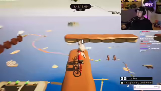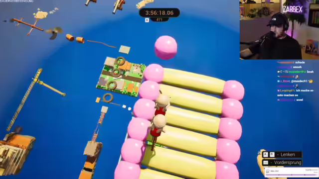 08:11:10Das Team navigiert durch anspruchsvolle Spielabschnitte, wobei der Fokus auf präziser Steuerung und Koordination liegt. Strategien werden angepasst, um Hindernisse wie bouncende Elemente und schmale Pfade zu überwinden. Die Spieler zeigen Entschlossenheit, indem sie Checkpoints nutzen und sich langsam vorantasten. Trotz Schwierigkeiten und Rückschlägen, wie dem ungewollten Abspringen oder dem Verfehlen von Gummielementen, bleiben sie konzentriert. Die Kommunikation zwischen den Spielern ist entscheidend, um die Herausforderungen zu meistern und das Ziel nicht aus den Augen zu verlieren. Die Atmosphäre ist angespannt, aber der unbedingte Wille, das Spiel zu beenden, treibt sie an. Die Spieler tauschen sich über die Schwierigkeit der Passagen aus und motivieren sich gegenseitig, die Herausforderungen zu meistern. Die Freude über erreichte Checkpoints ist spürbar und gibt neue Energie für die verbleibenden Aufgaben.