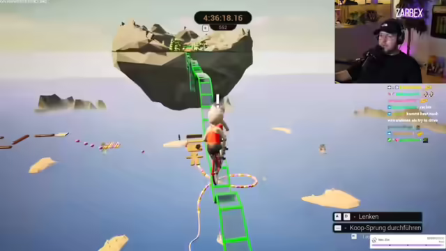 06:43:56Es wird eine neue Taktik entwickelt, um einen schwierigen Abschnitt zu überwinden: Aufs Grüne fahren, gleichzeitig springen und das Fahrzeug in der Luft um 90 Grad drehen. Nach einigen Versuchen wird eine weitere Idee ausprobiert: Rückwärtsfahren, um eine bessere Position zu erreichen. Diverse Anläufe und Winkel werden getestet, um auf die nächste Plattform zu gelangen. Die Schwierigkeit besteht darin, den perfekten Winkel und die richtige Geschwindigkeit zu finden, um präzise auf der Zielplattform zu landen. Verschiedene Methoden werden diskutiert, darunter das Springen von einer grünen Plattform und das Anvisieren einer Zuckerstange mit hoher Geschwindigkeit. Es wird betont, wie wichtig es ist, auf der grünen Plattform zu sein und sich dort zu drehen, um erfolgreich zu sein. Die Spieler experimentieren mit verschiedenen Anläufen und Sprungtechniken, um die Herausforderung zu meistern, wobei sie feststellen, dass ein präzises Treffen der Zuckerstange äußerst schwierig ist.