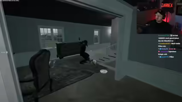 10:27:33Die Session beginnt mit einer direkten Konfrontation mit dem Geist im Spiel, wobei der Streamer betont, keine Angst vor Jumpscares zu haben und diese sogar herausfordert. Trotz dieser mutigen Haltung wird er von einem Jumpscare überrascht, der ihn an Michael Jackson erinnert, was zu einer humorvollen Reaktion führt. Er analysiert das Lachen des Geistes und vermutet, dass es sich verändert hat und möglicherweise weiblich klingt. Die Mods werden für das perfekte Timing eines Michael Jackson-Sounds während eines Jumpscares gelobt. Trotz anfänglicher Furchtlosigkeit und Herausforderungen an den Geist, wird der Streamer immer wieder von den gut getimten Jumpscares überrascht, was zu einer Mischung aus Erschrecken und Belustigung führt. Er äußert den Wunsch, die Jumpscares zu 'fressen', um sie hinter sich zu bringen, und geht proaktiv in die Zimmer, um sie auszulösen. Dabei interagiert er verbal mit dem Geist, beleidigt ihn sogar und fordert ihn heraus, was zu einer angespannten, aber unterhaltsamen Atmosphäre führt.