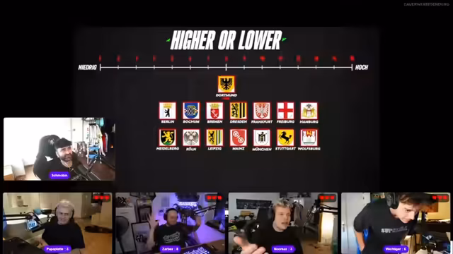 02:38:11Die erste Runde des Quizspiels konzentriert sich auf die All-Time-Peak-Zuschauerzahlen auf Twitch. Die Teilnehmer müssen mehrere Streamer anhand ihrer bekannten Höchstzahlen sortieren. Ein Streamer gibt eine vorgegebene Zahl (81.000 für Basti) vor, und die anderen müssen eingeschätzt werden, ob sie höher oder niedriger liegen. Während des Spiels kommt es zu Diskussionen über die genauen Zahlen und manche Spieler patzen bei ihren Schätzungen. Am Ende werden die korrekten Zahlen verkündet: IMAX mit 365.000, Knossi mit 336.000 und so weiter, bis Justin mit 34.000.