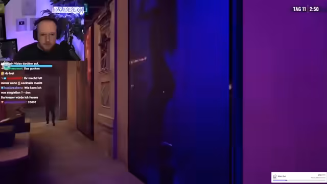 06:29:19Um den Betrieb und die Popularität zu steigern, wird eine Stripperin angestellt, die jedoch wenig Geld einbringt und mehr Ärger verursacht, als sie nützt. Gleichzeitig fällt durch eine Spende im Chat ein Betrag von 250 Euro an, was den Streamer sichtlich überrascht und positiv stimmt. Der Spender, Peter Hauke, wird im Chat gefeiert und als 'Ehrenmann' betitelt. Dieses Geld spendet er jedoch für die Anstellung der Stripperin, was zu neuen verbalen Auseinandersetzungen und respektlosen Kommentaren über deren Aussehen führt.