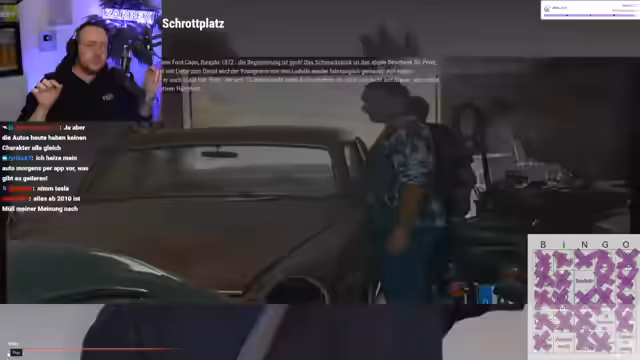 03:05:35Peter beginnt mit der Restaurierung eines Ford Capri, indem er eine defekte Haube und einen Spiegel lackiert. Der Streamer zeigt große Begeisterung für das Projekt und die damalige Handwerkskunst. In einem anderen Gespräch geht es um den Verkauf eines BMW 850i. Der Streamer äußert jedoch seine große Angst vor der Überweisung des hohen Betrags, da er ständig die Befürchtung hat, einen Zahlendreher zu machen und das Geld zu verlieren.