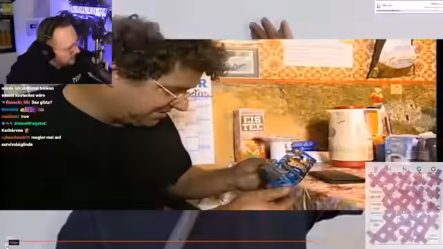 02:36:52Nachdem das erste Bingo-Feld getroffen wurde, startet eine neue Runde mit dem Thema 'Die Ludolfs'. Der Streamer gibt zu, die Serie nicht zu kennen und geht daher blind in die Runde. Der Chat wird massiv eingebunden, um die Bingo-Felder vorzuschlagen. Die Vorschläge reichen von allgemeinen Begriffen wie 'Schrott' und 'Haufenprinzip' bis zu spezifischen Charaktereigenschaften der Brüder wie 'Ersatzteile' oder 'kauft was'.