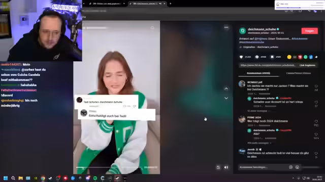 06:20:33Der Streamer kündigt ein bevorstehendes Event an, das dem Format 'Schlag den Rab' ähnelt und bei dem verschiedene Marken wie Deichmann in Wettkämpfen gegeneinander antreten werden. Er wurde fürstlich dafür bezahlt, live auf dieses Event zu reagieren. Um sich auf die Kampfeinsätze vorzubereiten, beginnt er damit, TikTok-Videos von Marken zu sichten, um sich über den aktuellen Beef und die gegenseitigen Kampfansagen zu informieren.